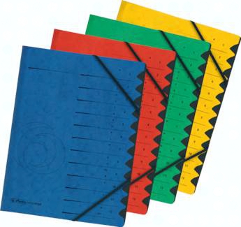 für die Ablage und Sortierung von ungelochten Unterlagen, numerisches Register auf dem Deckel, mit Gummiverschluss, damit nichts verloren geht, aus starkem Colorspan-Karton, Zwischenblätter aus schwarzem Spezialkarton mit Sichtlöchern, für Format DIN A4, Abmessung: 240 x 320 mm