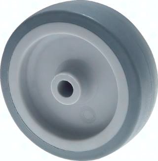 Eigenschaften: Einfache Radausführung für den innerbetrieblichen Einsatz auf glatten Böden. Mit Kunststofffelge und thermoplastischer Gummibandage, grau *ohne Fadenschutz, **statische Belastung. Bei dynamischen Lasten müssen ca. 30% in Abzug gebracht werden