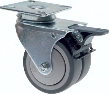 Eigenschaften: Einfache Rollenausführung für den innerbetrieblichen Einsatz auf glatten Böden. Stahlblechgehäuse, verzinkt-chromatiert. Räder mit Kunststofffelge und thermoplastischer Gummibandage, grau. Lagerart: Kugellager mit Fadenschutz (Ø 50 ohne Fadenschutz) *statische Belastung. Bei dynamischen Lasten müssen ca. 30% in Abzug gebracht werden