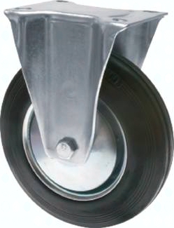 Eigenschaften: Robuster Vollgummireifen für einfache bis mittlere Beanspruchung. Geräuschloser Lauf, schont Transportgut. Stahlblechgehäuse verzinkt, zweifacher Kugelkranz und Abdichtung im Gabelkopf. Räder mit Vollgummibereifung schwarz auf Stahlblechfelge. Lagerart: Rollenkorblager mit Fadenschutz *kein Fadenschutz, **statische Belastung. Bei dynamischen Lasten müssen ca. 30 % in Abzug gebracht werden