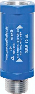 Funktion: Die Schlauchbruchsicherung lässt die für einen einwandfreien Betrieb von Druckluftwerkzeugen benötigten Luftmenge ungehindert durch. Erhöht sich jedoch schlagartig die Durchströmung, wie es typisch für einen Schlauchbruch oder -abriss ist, drosselt die Schlauchbruchsicherung sofort die Zuleitung zum Druckluftschlauch. Bei Erneuerung des Schlauches öffnet sich die Schlauchbruchsicherung automatisch. Ein Ausschlagen bzw. Peitschen des Schlauches wird somit verhindert. Einsatz: Es wird empfohlen die Schlauchbruchsicherung an der Verbindungsstelle zwischen fester Verrohrung und flexiblem Druckschlauch anzubringen, z. B. hinter einer Wartungseinheit. Werkstoffe: Gehäuse: Aluminium, Kolben: POM/Aluminium, Dichtung: NBR Temperaturbereich: -20°C bis max. +80°C (G 3/4" - G 2": bis max. +120°C) Betriebsdruck: 0 - 18 bar (G 1" - G 2": bis 35 bar) Medien: geölte und ungeölte Druckluft *Körperdurchmesser