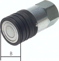 Werkstoffe: Stahl verzinkt, Dichtung: NBR, Stützring: PTFE Temperaturbereich: -30°C bis max. +100°C Vorteile: kein Schmutz kann eindringen, da die Kupplung an der glatten Oberfläche "flaches Gesicht" einfach saubergewischt werden kann, axiale Kräfte können durch die Konstruktion dieser Kupplung gut aufgenommen werden, besonders geeignet für Verwendung an Hydraulikschläuchen.