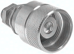 Werkstoffe: Stahl verzinkt, Dichtung: NBR Temperaturbereich: -20°C bis max. +100°C Vorteile: Schnellverschluss-Schraubkupplungen sperren am Stecker und an der Muffe im entkuppelten Zustand ab. Die Verbindung von Kupplungsmuffe und Kupplungsstecker erfolgt durch Verschrauben mit der Handmutter. Beim Kupplungsvorgang ist der Ventilraum abgedichtet bevor sich die Ventile öffnen. Beim Entkuppeln sind die Ventile bereits geschlossen, bevor die Verbindung aus der Abdichtung gezogen werden kann. Bis max. 50 bar unter Druck kuppelbar, Sicher gegenüber Druckstößen und Druckschwingungen, Strömungsgünstige Ausbildung des Durchflussbereiches