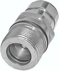 Werkstoffe: Stahl verzinkt, Dichtung: NBR Temperaturbereich: -20°C bis max. +100°C Vorteile: Schnellverschluss-Schraubkupplungen sperren am Stecker und an der Muffe im entkuppelten Zustand ab. Die Verbindung von Kupplungsmuffe und Kupplungsstecker erfolgt durch Verschrauben mit der Handmutter. Beim Kupplungsvorgang ist der Ventilraum abgedichtet bevor sich die Ventile öffnen. Beim Entkuppeln sind die Ventile bereits geschlossen, bevor die Verbindung aus der Abdichtung gezogen werden kann. Bis max. 50 bar unter Druck kuppelbar, Sicher gegenüber Druckstößen und Druckschwingungen, Strömungsgünstige Ausbildung des Durchflussbereiches