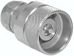Werkstoffe: Stahl verzinkt, Dichtung: NBR Temperaturbereich: -20°C bis max. +100°C Vorteile: Schnellverschluss-Schraubkupplungen sperren am Stecker und an der Muffe im entkuppelten Zustand ab. Die Verbindung von Kupplungsmuffe und Kupplungsstecker erfolgt durch Verschrauben mit der Handmutter. Beim Kupplungsvorgang ist der Ventilraum abgedichtet bevor sich die Ventile öffnen. Beim Entkuppeln sind die Ventile bereits geschlossen, bevor die Verbindung aus der Abdichtung gezogen werden kann. Bis max. 50 bar unter Druck kuppelbar, Sicher gegenüber Druckstößen und Druckschwingungen, Strömungsgünstige Ausbildung des Durchflussbereiches