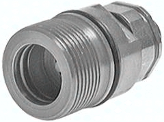 Werkstoffe: Stahl verzinkt, Dichtung: NBR Temperaturbereich: -20°C bis max. +100°C Vorteile: Schnellverschluss-Schraubkupplungen sperren am Stecker und an der Muffe im entkuppelten Zustand ab. Die Verbindung von Kupplungsmuffe und Kupplungsstecker erfolgt durch Verschrauben mit der Handmutter. Beim Kupplungsvorgang ist der Ventilraum abgedichtet bevor sich die Ventile öffnen. Beim Entkuppeln sind die Ventile bereits geschlossen, bevor die Verbindung aus der Abdichtung gezogen werden kann. Bis max. 50 bar unter Druck kuppelbar, Sicher gegenüber Druckstößen und Druckschwingungen, Strömungsgünstige Ausbildung des Durchflussbereiches