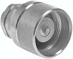 Werkstoffe: Stahl verzinkt, Dichtung: NBR Temperaturbereich: -20°C bis max. +100°C Vorteile: Schnellverschluss-Schraubkupplungen sperren am Stecker und an der Muffe im entkuppelten Zustand ab. Die Verbindung von Kupplungsmuffe und Kupplungsstecker erfolgt durch Verschrauben mit der Handmutter. Beim Kupplungsvorgang ist der Ventilraum abgedichtet bevor sich die Ventile öffnen. Beim Entkuppeln sind die Ventile bereits geschlossen, bevor die Verbindung aus der Abdichtung gezogen werden kann. Bis max. 50 bar unter Druck kuppelbar, Sicher gegenüber Druckstößen und Druckschwingungen, Strömungsgünstige Ausbildung des Durchflussbereiches