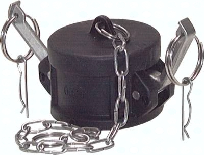 Werkstoffe: Typ Edelstahl: Körper: Edelstahl (1.4408), Dichtung: NBR, Griff: Edelstahl, Ring / Sicherungsstift / ggf. Kette: Edelstahl Typ Polypropylen: Körper: Polypropylen*, Dichtung: EPDM (11/4" Stecker- Ø 45 mm): NBR, Griff: Edelstahl, Ring / Sicherungsstift / ggf. Kette: Edelstahl Typ Messing: Körper: Messing, Dichtung: NBR, Griff: Messing, Ring / Sicherungsstift / ggf. Kette: Edelstahl Typ Aluminium: Körper: Aluminium, Dichtung: NBR, Griff: Edelstahl, Ring / Sicherungsstift / ggf. Kette: Stahl verzinkt Temperaturbereich: -10°C bis max. +80°C Druckbereich: 0 - 16 bar, sowie Grobvakuum, (Polypropylen: 6 bar bei +40°C, Aluminium DN 50 - DN 120: 10 bar, Aluminium DN 140: 5,2 bar) Lieferumfang: inkl. Ring, Sicherungsstift und ggf. Kette Optional: andere Dichtungswerkstoffe durch Austausch der Dichtungen Vorteile: voller Durchgang, geringer Druckverlust, auch für Feststoffe geeignet, da keine internen Ventile, Abmessungen weltweit genormt nach MIL-C-27487 *Für Flüssigkeiten bitte bevorzugt Edelstahl, Messing oder Aluminium einsetzen, **Stecker-Ø 53 mm mit reduziertem Anschluss. Das entspricht nicht der Norm, ***vier Handhebel, ****ohne Sicherungsstift, *****ein Handhebel ohne Sicherungsstift