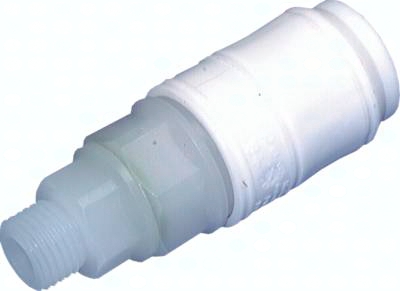 POM-Kupplungen: Werkstoffe: Körper: POM schwarz, Federn und Ventil: Edelstahl 1.4310, Dichtung: NBR Temperaturbereich: -20°C bis max. +80°C Betriebsdruck: 0 - 10 bar PVDF-Kupplungen: Werkstoffe: Körper: PVDF weiß, Federn und Ventil: Edelstahl 1.4571, Dichtung: Viton Temperaturbereich: -20°C bis max. +120°C Betriebsdruck: 0 - 8 bar Nur folgende Paarungen von Kupplungsdose und Kupplungsstecker sind möglich: Kupplungsdose Standard absperrend mit Kupplungsstecker Standard (ohne Ventil), Kupplungsdose Standard absperrend mit Kupplungsstecker absperrend BA, Nicht mit Standardkupplungen NW 7,2 kombinierbar!