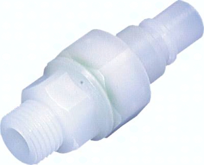 POM-Kupplungen: Werkstoffe: Körper: POM schwarz, Federn und Ventil: Edelstahl 1.4310, Dichtung: NBR Temperaturbereich: -20°C bis max. +80°C Betriebsdruck: 0 - 10 bar PVDF-Kupplungen: Werkstoffe: Körper: PVDF weiß, Federn und Ventil: Edelstahl 1.4571, Dichtung: Viton Temperaturbereich: -20°C bis max. +120°C Betriebsdruck: 0 - 8 bar Nur folgende Paarungen von Kupplungsdose und Kupplungsstecker sind möglich: Kupplungsdose Standard absperrend mit Kupplungsstecker Standard (ohne Ventil), Kupplungsdose Standard absperrend mit Kupplungsstecker absperrend BA, Nicht mit Standardkupplungen NW 7,2 kombinierbar!