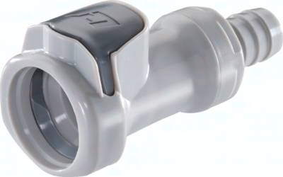 Steckerdurchmesser: 18,5 mm Durchfluss* Luft (Wasser): 1200 - 4100 l/min (15 - 57 l/min) Funktion: Wird durch Einstecken des Steckers in die Muffe bis zum hörbaren Klick gekuppelt. Ein Druck auf den ergonomischen Kunststoff-Entriegelungsknopf (gegen versehentliches Entriegeln geschützt) gibt den Stecker wieder frei. Es können Kupplungsstecker und Kupplungsdosen mit und ohne Absperrventil, sowie verschiedene Werkstoffe beliebig kombiniert werden. Das Absperrventil verhindert ein Austreten des Mediums im ungekuppelten Zustand. Typ Polypropylen: Werkstoffe: Körper, Ventile und Entriegelungstaste: Polypropylen (FDA-zertifiziert), Ventilfedern: Edelstahl AISI 316, Dichtungen: EPDM, äußere Feder unter Druckknopf: AISI 302, Schottmutter: Polypropylen, Schottdichtung: EPDM Temperaturbereich: 0°C bis max. +70°C Betriebsdruck: 0 - 4,2 bar, Vakuum bis 80%, (>+27°C Druckabschläge beachten: +40°C: max. 3,4 bar, +50°C: max. 2,7 bar, +60°C: max. 2,2 bar, +70°C: max. 1,7 bar) Medien: Druckluft, Wasser, viele Säuren und Laugen, Alkohole, Glykol, MEK, Sauerstoff**, Ozon, Kohlendioxid, viele Chemikalien Sterilisierbar durch: Formalin, Isopropylalkohol, Ethylalkohol, Ethylenoxid, Gammastrahlung Einsatzbereich: Für viele Chemikalien geeignet. Keine Beständigkeit gegenüber Mineralölen. Typ Polysulfon: Werkstoffe: Körper, Ventile und Entriegelungstaste: Polysulfon (FDA-zertifiziert), Ventilfedern: Edelstahl AISI 316, Dichtungen: EPDM, äußere Feder unter Druckknopf: AISI 302, Schottmutter: Polypropylen, Schottdichtung: EPDM Temperaturbereich: -40°C bis max. +138°C Betriebsdruck: 0 - 8,6 bar, Vakuum bis 80% (>+90°C Druckabschläge beachten: +100°C: max. 8,2 bar, +110°C: max. 7,8 bar, +120°C: max. 7,4 bar, +130°C: max. 7,1 bar, +138°C: max. 6,8 bar) Medien: Druckluft, Wasser, viele Säuren und Laugen, Alkohole, Glykol, Sauerstoff**, Ozon, viele Chemikalien Sterilisierbar durch: Formalin, Isopropylalkohol, Ethylalkohol, Ethylenoxid, Gammastrahlung, Erwärmung auf max. +121°C (ungekuppelt), Autoklavieren bei max. +121°C (ungekuppelt) Einsatzbereich: Kompatibel zu***: CPC-Colder HFC12, CPC-Colder HFC35 Für allgemeine Anwendungen, Anwendungen bei hohen Temperaturen. Keine Beständigkeit gegenüber Mineralölen. Nicht für Außenanwendungen geeignet, da nicht UV-stabilisiert. *bei 1 bar Druckabfall (je nach Konfiguration der Kupplungskombination: mit/ohne Ventil, Anschlussdimension, ... liegt der Durchfluss innerhalb des angegeben Bereichs), **vor Verwendung mit Sauerstoff unbedingt reinigen ***Namen und Bezeichnungen sind z.T. eingetragene Warenzeichen der jeweiligen Hersteller.