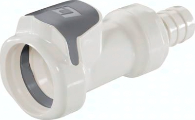 Steckerdurchmesser: 18,5 mm Durchfluss* Luft (Wasser): 1200 - 4100 l/min (15 - 57 l/min) Funktion: Wird durch Einstecken des Steckers in die Muffe bis zum hörbaren Klick gekuppelt. Ein Druck auf den ergonomischen Kunststoff-Entriegelungsknopf (gegen versehentliches Entriegeln geschützt) gibt den Stecker wieder frei. Es können Kupplungsstecker und Kupplungsdosen mit und ohne Absperrventil, sowie verschiedene Werkstoffe beliebig kombiniert werden. Das Absperrventil verhindert ein Austreten des Mediums im ungekuppelten Zustand. Typ Polypropylen: Werkstoffe: Körper, Ventile und Entriegelungstaste: Polypropylen (FDA-zertifiziert), Ventilfedern: Edelstahl AISI 316, Dichtungen: EPDM, äußere Feder unter Druckknopf: AISI 302, Schottmutter: Polypropylen, Schottdichtung: EPDM Temperaturbereich: 0°C bis max. +70°C Betriebsdruck: 0 - 4,2 bar, Vakuum bis 80%, (>+27°C Druckabschläge beachten: +40°C: max. 3,4 bar, +50°C: max. 2,7 bar, +60°C: max. 2,2 bar, +70°C: max. 1,7 bar) Medien: Druckluft, Wasser, viele Säuren und Laugen, Alkohole, Glykol, MEK, Sauerstoff**, Ozon, Kohlendioxid, viele Chemikalien Sterilisierbar durch: Formalin, Isopropylalkohol, Ethylalkohol, Ethylenoxid, Gammastrahlung Einsatzbereich: Für viele Chemikalien geeignet. Keine Beständigkeit gegenüber Mineralölen. Typ Polysulfon: Werkstoffe: Körper, Ventile und Entriegelungstaste: Polysulfon (FDA-zertifiziert), Ventilfedern: Edelstahl AISI 316, Dichtungen: EPDM, äußere Feder unter Druckknopf: AISI 302, Schottmutter: Polypropylen, Schottdichtung: EPDM Temperaturbereich: -40°C bis max. +138°C Betriebsdruck: 0 - 8,6 bar, Vakuum bis 80% (>+90°C Druckabschläge beachten: +100°C: max. 8,2 bar, +110°C: max. 7,8 bar, +120°C: max. 7,4 bar, +130°C: max. 7,1 bar, +138°C: max. 6,8 bar) Medien: Druckluft, Wasser, viele Säuren und Laugen, Alkohole, Glykol, Sauerstoff**, Ozon, viele Chemikalien Sterilisierbar durch: Formalin, Isopropylalkohol, Ethylalkohol, Ethylenoxid, Gammastrahlung, Erwärmung auf max. +121°C (ungekuppelt), Autoklavieren bei max. +121°C (ungekuppelt) Einsatzbereich: Kompatibel zu***: CPC-Colder HFC12, CPC-Colder HFC35 Für allgemeine Anwendungen, Anwendungen bei hohen Temperaturen. Keine Beständigkeit gegenüber Mineralölen. Nicht für Außenanwendungen geeignet, da nicht UV-stabilisiert. *bei 1 bar Druckabfall (je nach Konfiguration der Kupplungskombination: mit/ohne Ventil, Anschlussdimension, ... liegt der Durchfluss innerhalb des angegeben Bereichs), **vor Verwendung mit Sauerstoff unbedingt reinigen ***Namen und Bezeichnungen sind z.T. eingetragene Warenzeichen der jeweiligen Hersteller.