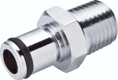 Steckerdurchmesser: 11 mm (Haltenutbreite ca. 1,3 mm) Durchfluss* Luft (Wasser): 560 - 2100 l/min (6 - 18 l/min) Funktion: Wird durch Einstecken des Steckers in die Muffe bis zum hörbaren "Klick" gekuppelt. Ein Druck auf den Entriegelungsknopf (bei Kunststoffkupplungen mit Schlauchanschluss gegen versehentliches Entriegeln geschützt) gibt den Stecker wieder frei. Es können Kupplungsstecker und Kupplungsdosen mit und ohne Absperrventil, sowie verschiedene Werkstoffe beliebig kombiniert werden. Das Absperrventil verhindert ein Austreten des Mediums im ungekuppelten Zustand. Typ POM: Werkstoffe: Körper und Ventile: Acetal (POM, FDA-zertifiziert), Ventilfedern: Edelstahl AISI 316, Dichtungen: NBR, Entriegelungstaste: AISI 301, Schottmutter: Messing vernickelt Temperaturbereich: -40°C bis max. +80°C Betriebsdruck: 0 - 8,3 bar, Vakuum bis 80% Medien: Druckluft, Wasser, Alkohole, Glykol, Mineralöle, Benzin, Sauerstoff**, Kohlendioxid, milde Chemikalien Sterilisierbar durch: Formalin, Isopropylalkohol, Ethylalkohol Einsatzbereich: Für allgemeine Anwendungen. Gute Beständigkeit gegenüber Mineralölen. Typ Polypropylen (Bitte Farbe angeben: beige = PPC oder grau = PPL): Werkstoffe: Körper und Ventile: Polypropylen (FDA-zertifiziert), Ventilfedern: Edelstahl AISI 316, Dichtungen: EPDM, Entriegelungstaste: AISI 301, Schottmutter: Messing vernickelt Temperaturbereich: 0°C bis max. +70°C Betriebsdruck: 0 - 8,3 bar, Vakuum bis 80%, (>+27°C Druckabschläge beachten: +40°C: max. 7 bar, +50°C: max. 6,5 bar, +60°C: max. 5,9 bar, +70°C: max. 5,2 bar) Medien: Druckluft, Wasser, viele Säuren und Laugen, Alkohole, Glykol, MEK, Sauerstoff**, Ozon, Kohlendioxid, viele Chemikalien Sterilisierbar durch: Formalin, Isopropylalkohol, Ethylalkohol, Ethylenoxid, Gammastrahlung Einsatzbereich: Für viele Chemikalien geeignet. Keine Beständigkeit gegenüber Mineralölen. Typ Messing verchromt: Werkstoffe: Körper: Messing verchromt (lebensmittelgeeignet), Ventile: Acetal (POM, FDA-zertifiziert), Ventilfedern: Edelstahl AISI 316, Dichtungen: NBR, Entriegelungstaste: AISI 301, Schottmutter: Messing vernickelt Temperaturbereich: -40°C bis max. +80°C Betriebsdruck: 0 - 17,3 bar, Vakuum bis 80% Medien: Druckluft, Alkohole, Glykol, Mineralöle, Benzin, Sauerstoff**, Kohlendioxid Sterilisierbar durch: Formalin, Isopropylalkohol, Ethylalkohol, Gammastrahlung, Erwärmung auf +121°C (ungekuppelt) Einsatzbereich: Für Anwendungen mit erhöhten Drücken oder mechanischen Belastungen (z.B. durch häufiges Kuppeln). Gute Beständigkeit gegenüber Mineralölen. *bei 1 bar Druckabfall (je nach Konfiguration der Kupplungskombination: mit/ohne Ventil, Anschlussdimension, ... liegt der Durchfluss innerhalb des angegebenen Bereichs), **vor Verwendung mit Sauerstoff unbedingt reinigen. Kompatibel zu****: CPC-Colder PLC, CPC-Colder PLC12, CPC-Colder LC