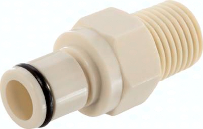 Steckerdurchmesser: 11 mm (Haltenutbreite ca. 1,3 mm) Durchfluss* Luft (Wasser): 560 - 2100 l/min (6 - 18 l/min) Funktion: Wird durch Einstecken des Steckers in die Muffe bis zum hörbaren "Klick" gekuppelt. Ein Druck auf den Entriegelungsknopf (bei Kunststoffkupplungen mit Schlauchanschluss gegen versehentliches Entriegeln geschützt) gibt den Stecker wieder frei. Es können Kupplungsstecker und Kupplungsdosen mit und ohne Absperrventil, sowie verschiedene Werkstoffe beliebig kombiniert werden. Das Absperrventil verhindert ein Austreten des Mediums im ungekuppelten Zustand. Typ POM: Werkstoffe: Körper und Ventile: Acetal (POM, FDA-zertifiziert), Ventilfedern: Edelstahl AISI 316, Dichtungen: NBR, Entriegelungstaste: AISI 301, Schottmutter: Messing vernickelt Temperaturbereich: -40°C bis max. +80°C Betriebsdruck: 0 - 8,3 bar, Vakuum bis 80% Medien: Druckluft, Wasser, Alkohole, Glykol, Mineralöle, Benzin, Sauerstoff**, Kohlendioxid, milde Chemikalien Sterilisierbar durch: Formalin, Isopropylalkohol, Ethylalkohol Einsatzbereich: Für allgemeine Anwendungen. Gute Beständigkeit gegenüber Mineralölen. Typ Polypropylen (Bitte Farbe angeben: beige = PPC oder grau = PPL): Werkstoffe: Körper und Ventile: Polypropylen (FDA-zertifiziert), Ventilfedern: Edelstahl AISI 316, Dichtungen: EPDM, Entriegelungstaste: AISI 301, Schottmutter: Messing vernickelt Temperaturbereich: 0°C bis max. +70°C Betriebsdruck: 0 - 8,3 bar, Vakuum bis 80%, (>+27°C Druckabschläge beachten: +40°C: max. 7 bar, +50°C: max. 6,5 bar, +60°C: max. 5,9 bar, +70°C: max. 5,2 bar) Medien: Druckluft, Wasser, viele Säuren und Laugen, Alkohole, Glykol, MEK, Sauerstoff**, Ozon, Kohlendioxid, viele Chemikalien Sterilisierbar durch: Formalin, Isopropylalkohol, Ethylalkohol, Ethylenoxid, Gammastrahlung Einsatzbereich: Für viele Chemikalien geeignet. Keine Beständigkeit gegenüber Mineralölen. Typ Messing verchromt: Werkstoffe: Körper: Messing verchromt (lebensmittelgeeignet), Ventile: Acetal (POM, FDA-zertifiziert), Ventilfedern: Edelstahl AISI 316, Dichtungen: NBR, Entriegelungstaste: AISI 301, Schottmutter: Messing vernickelt Temperaturbereich: -40°C bis max. +80°C Betriebsdruck: 0 - 17,3 bar, Vakuum bis 80% Medien: Druckluft, Alkohole, Glykol, Mineralöle, Benzin, Sauerstoff**, Kohlendioxid Sterilisierbar durch: Formalin, Isopropylalkohol, Ethylalkohol, Gammastrahlung, Erwärmung auf +121°C (ungekuppelt) Einsatzbereich: Für Anwendungen mit erhöhten Drücken oder mechanischen Belastungen (z.B. durch häufiges Kuppeln). Gute Beständigkeit gegenüber Mineralölen. *bei 1 bar Druckabfall (je nach Konfiguration der Kupplungskombination: mit/ohne Ventil, Anschlussdimension, ... liegt der Durchfluss innerhalb des angegebenen Bereichs), **vor Verwendung mit Sauerstoff unbedingt reinigen. Kompatibel zu****: CPC-Colder PLC, CPC-Colder PLC12, CPC-Colder LC
