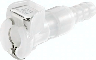 Steckerdurchmesser: 7,8 mm Durchfluss* Luft (Wasser): 50 - 500 l/min (0,4 - 6,5 l/min) Funktion: Wird durch Einstecken des Steckers in die Muffe bis zum hörbaren "Klick" gekuppelt. Ein Druck auf den Entriegelungsknopf (bei Kunststoffkupplungen mit Schlauchanschluss gegen versehentliches Entriegeln geschützt) gibt den Stecker wieder frei. Es können Kupplungsstecker und Kupplungsdosen mit und ohne Absperrventil, sowie verschiedene Werkstoffe beliebig kombiniert werden. Das Absperrventil verhindert ein Austreten des Mediums im ungekuppelten Zustand. Typ POM: Werkstoffe: Körper und Ventile: Acetal (POM, FDA-zertifiziert), Ventilfedern: Edelstahl AISI 316, Dichtungen: NBR, Entriegelungstaste: AISI 301, Schottmutter: Messing vernickelt Temperaturbereich: -40°C bis max. +80°C Betriebsdruck: 0 - 8,3 bar, Vakuum bis 80% Medien: Druckluft, Wasser, Alkohole, Glykol, Mineralöle, Benzin, Sauerstoff**, Kohlendioxid, milde Chemikalien Sterilisierbar durch: Formalin, Isopropylalkohol, Ethylalkohol Einsatzbereich: Für allgemeine Anwendungen. Gute Beständigkeit gegenüber Mineralölen. Typ Polypropylen (Bitte Farbe angeben: beige = PPC oder grau = PPL): Werkstoffe: Körper und Ventile: Polypropylen (FDA-zertifiziert), Ventilfedern: Edelstahl AISI 316, Dichtungen: EPDM, Entriegelungstaste: AISI 301, Schottmutter: Messing vernickelt Temperaturbereich: 0°C bis max. +70°C Betriebsdruck: 0 - 8,3 bar, Vakuum bis 80%, (>+27°C Druckabschläge beachten: +40°C: max. 7 bar, +50°C: max. 6,5 bar, +60°C: max. 5,9 bar, +70°C: max. 5,2 bar) Medien: Druckluft, Wasser, viele Säuren und Laugen, Alkohole, Glykol, MEK, Sauerstoff**, Ozon, Kohlendioxid, viele Chemikalien Sterilisierbar durch: Formalin, Isopropylalkohol, Ethylalkohol, Ethylenoxid, Gammastrahlung Einsatzbereich: Für viele Chemikalien geeignet. Keine Beständigkeit gegenüber Mineralölen. Typ Messing verchromt: Werkstoffe: Körper: Messing verchromt (lebensmittelgeeignet), Ventile: Acetal (POM, FDA-zertifiziert), Ventilfedern: Edelstahl AISI 316, Dichtungen: NBR, Entriegelungstaste: AISI 301, Schottmutter: Messing vernickelt Temperaturbereich: -40°C bis max. +80°C Betriebsdruck: 0 - 17,3 bar, Vakuum bis 80% Medien: Druckluft, Alkohole, Glykol, Mineralöle, Benzin, Sauerstoff**, Kohlendioxid Sterilisierbar durch: Formalin, Isopropylalkohol, Ethylalkohol, Gammastrahlung, Erwärmung auf +121°C (ungekuppelt) Einsatzbereich: Für Anwendungen mit erhöhten Drücken oder mechanischen Belastungen (z.B. durch häufiges Kuppeln). Gute Beständigkeit gegenüber Mineralölen. *bei 1 bar Druckabfall (je nach Konfiguration der Kupplungskombination: mit/ohne Ventil, Anschlussdimension, ... liegt der Durchfluss innerhalb des angegebenen Bereichs), **vor Verwendung mit Sauerstoff unbedingt reinigen. Kompatibel zu****: CPC-Colder PMC, CPC-Colder PMC12, CPC-Colder MC ****Namen und Bezeichnungen sind z.T. eingetragene Warenzeichen der jeweiligen Hersteller.