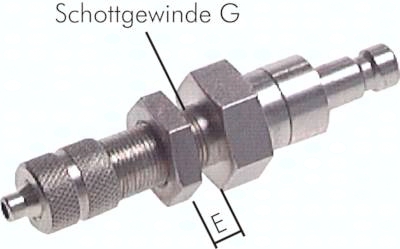 Werkstoffe: Gehäuse: Messing, Messing vernickelt oder 1.4305, Dichtung: NBR (Edelstahl: Viton) Temperaturbereich: -20°C bis max. +100°C (Edelstahl: -15°C bis max. +200°C) Betriebsdruck: 0 - 35 bar sowie Grobvakuum Durchfluss*: 165 l/min Achtung: Nur folgende Paarungen von Kupplungsdose und Kupplungsstecker sind möglich: Kupplungsdose absperrend BA mit Kupplungsstecker ohne Ventil Kupplungsdose absperrend BA mit Kupplungsstecker absperrend BA *6 bar Eingangsdruck, 0,5 bar Druckdifferenz Kompatibel zu**: Rectus (20, 91), Walther (06-003) **Namen und Bezeichnungen sind z.T. eingetragene Warenzeichen der jeweiligen Hersteller. Optional: mit Ventil für beidseitige Absperrung -BA
