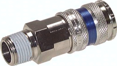 Werkstoffe: Gehäuse: Messing, Messing vernickelt, Stahl gehärtet, 1.4305, Dichtung: NBR (Edelstahl: Viton) Temperaturbereich: -20°C bis max. +100°C (Edelstahl: -15°C bis max. +200°C, Kunststoffhülse max. +80°C) Betriebsdruck: 0 - 35 bar sowie Grobvakuum, CEJN-Kupplungen: 0 - 16 bar Durchfluss***: Bolzenverriegelung: 1100 l/min (Option -BA: 800 l/min), Kugelverriegelung: 1800 l/min, CEJN-Kupplung: 2100 l/min, Kugelverriegelung/Kunststoffhülse: 2100 l/min ***6 bar Eingangsdruck, 0,5 bar Druckdifferenz Achtung: Nur folgende Paarungen von Kupplungsdose und Kupplungsstecker sind möglich: Kupplungsdose absperrend BA mit Kupplungsstecker ohne Ventil Kupplungsdose absperrend BA mit Kupplungsstecker absperrend BA Kompatibel zu**: Rectus (25, 26, 1600, 1625), TEMA (1600), CEJN (320), JWL (520, 530, 560), Legris (25, 26), Parker (PE, PEF), Prevost (E ... 07) und viele andere deutsche Fabrikate **Namen und Bezeichnungen sind z.T. eingetragene Warenzeichen der jeweiligen Hersteller. Optional: Körper aus 1.4404 -ES4AKV, Verwendung für Stecker beidseitig absperrend -BA, NPT-Gewinde -NPT, rote Schiebehülse, unverwechselbar Achteck SW12 -ROC**, grüne Schiebehülse, unverwechselbar Kreis Ø 12,5 mm -GRC**, blaue Schiebehülse, unverwechselbar Sechseck SW12 -BLC**, braune Schiebehülse, unverwechselbar Dreieck 12,5 mm -BRC** *G-Gewinde, **Körper: Messing blank
