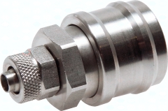 Werkstoffe: Gehäuse: Messing, Messing vernickelt, Stahl gehärtet, 1.4305, Dichtung: NBR (Edelstahl: Viton) Temperaturbereich: -20°C bis max. +100°C (Edelstahl: -15°C bis max. +200°C, Kunststoffhülse max. +80°C) Betriebsdruck: 0 - 35 bar sowie Grobvakuum, CEJN-Kupplungen: 0 - 16 bar Durchfluss***: Bolzenverriegelung: 1100 l/min (Option -BA: 800 l/min), Kugelverriegelung: 1800 l/min, CEJN-Kupplung: 2100 l/min, Kugelverriegelung/Kunststoffhülse: 2100 l/min ***6 bar Eingangsdruck, 0,5 bar Druckdifferenz Achtung: Nur folgende Paarungen von Kupplungsdose und Kupplungsstecker sind möglich: Kupplungsdose absperrend BA mit Kupplungsstecker ohne Ventil Kupplungsdose absperrend BA mit Kupplungsstecker absperrend BA Kompatibel zu**: Rectus (25, 26, 1600, 1625), TEMA (1600), CEJN (320), JWL (520, 530, 560), Legris (25, 26), Parker (PE, PEF), Prevost (E ... 07) und viele andere deutsche Fabrikate **Namen und Bezeichnungen sind z.T. eingetragene Warenzeichen der jeweiligen Hersteller. Optional: Verwendung für Stecker beidseitig absperrend -BA