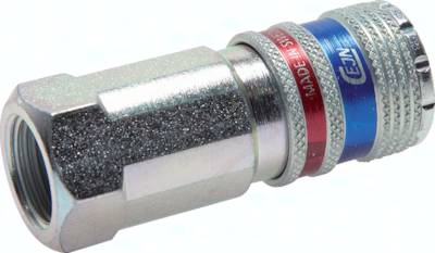 Werkstoffe: Gehäuse: Stahl / Messing verzinkt, Dichtung: NBR Temperaturbereich: -20°C bis max. +80°C Betriebsdruck: 0 bis 16 bar Durchfluss: 2.250 l/min (Eingangsdruck 6 bar, max. Druckabfall 0,5 bar) Funktion: Das Kuppeln erfolgt wie bei Standardkupplungen durch Einstecken des Stecknippels in die Kupplungsdose. Das Entkuppeln erfolgt durch Zurückschieben der Entriegelungshülse. Dann schließt die Kupplungsdose und entlüftet den Kupplungsstecker, während dieser noch in der Kupplungsdose festgehalten wird. Die Kupplungsdose gibt den Stecker erst frei, wenn der Restdruck auf der Steckerseite einen Druck von ca. 0,3 bar unterschritten hat. Der gefährliche Peitschenhiebeffekt wird somit zuverlässig (abhängig von dem auf Steckerseite anliegendem Druck) verhindert. Achtung: Nur Kupplungsstecker aus gehärtetem Stahl verwenden! Kompatibel zu**: Rectus (25, 26, 1600, 1625), TEMA (1600), CEJN (320), JWL (520, 530, 560), Legris (25, 26), Parker (PE, PEF), Prevost (E ... 07) und viele andere deutsche Fabrikate **Namen und Bezeichnungen sind z.T. eingetragene Warenzeichen der jeweiligen Hersteller.