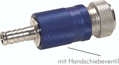 Werkstoffe: Gehäuse: Messing vernickelt/Stahl gehärtet, Schiebehülse: Aluminium eloxiert, Dichtung: NBR Temperaturbereich: -20°C bis max. +100°C Betriebsdruck: 0 - 20 bar Durchfluss: 1.400 l/min (Eingangsdruck 6 bar, max. Druckabfall 0,5 bar) Funktion: Diese Sicherheitskupplung ist eine Kombination aus Handschiebeventil und Schnellverschlusskupplung. Nur wenn durch die Schiebehülse die Steckerseite entlüftet wurde, lässt sich die Kupplung lösen. Die Schiebehülse kann nur im gekuppelten Zustand bewegt werden und funktioniert wie ein 3/2-Wege Handschiebeventil. Kompatibel zu**: Rectus (25, 26, 1600, 1625), TEMA (1600), CEJN (320), JWL (520, 530, 560), Legris (25, 26), Parker (PE, PEF), Prevost (E ... 07) und viele andere deutsche Fabrikate **Namen und Bezeichnungen sind z.T. eingetragene Warenzeichen der jeweiligen Hersteller.