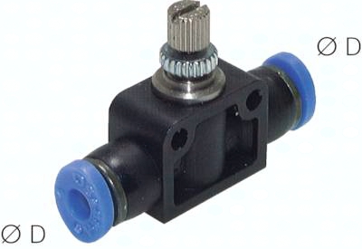 Werkstoffe: Körper: Messing vernickelt / PBT, Dichtung: NBR, Haltekralle: Edelstahl, Patrone: ZnDC vernickelt, Lösering: POM Betriebsdruck: -0,95 bis 10 bar Temperaturbereich: 0°C bis max. +60°C Funktionsprinzip: Drosselrückschlagventile drosseln den Durchfluss in einer Richtung, in der anderen Richtung ist der Durchfluss ungedrosselt. Standardform sind die Drosselrückschlagventile "abluftregelnd". Sind diese in z.B. einen Zylinder eingeschraubt, ermöglicht diese einen gleichmäßigen Lauf ohne Slip-Stick-Effekt. Bei Zylindern mit kleinem Volumen (kleiner Durchmesser/geringer Hub), werden Drosselrückschlagventile in der Sonderform "zuluftregelnd" eingesetzt. Medien: Druckluft, neutrale Gase *Mini-Bauform
