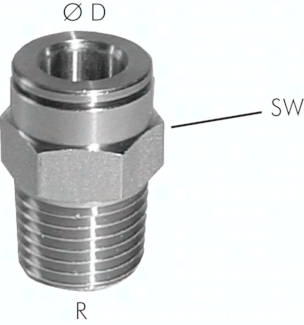 Werkstoffe: Körper und Lösering: 1.4404, Dichtungen: Viton (zylindrische Gewinde mit gekammertem Viton O-Ring). Werkstoffe sind FDA-konform, die Verschraubung ist jedoch nicht zertifiziert. Temperaturbereich: -20°C bis max. +150°C (Ø 16 mm: -15°C bis max. +120°C) Betriebsdruck: -0,95 bis 15 bar (Ø 16 mm: max. 10 bar) Medien: Druckluft, ungefährliche Gase und Flüssigkeiten Information: Bei der Montage werden ausschließlich silikonfreie Dichtungen und Fette verwendet! *nur Außensechskant
