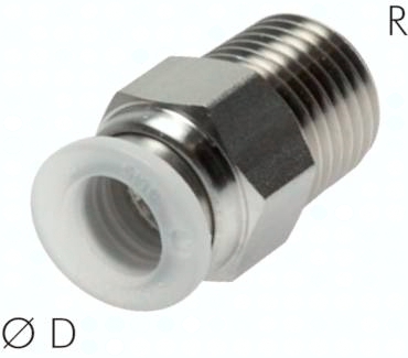 Werkstoffe: Körper und Lösering: Polypropylen, Gewindeteil: Polypropylen oder Edelstahl AISI 304, Patrone: Edelstahl AISI 304, Dichtungen: EPDM mit PTFE-Beschichtung (zylindrische Gewinde mit gekammertem EPDM O-Ring), Haltekrallen: Edelstahl AISI 301, verwendete Kunststoffe und Dichtungen besitzen eine FDA-Zulassung Temperaturbereich: -20°C bis max. +80°C Betriebsdruck: -0,95 bis 9 bar (-20°C bis max. +20°C), 30°C: < 6 bar, 40°C: < 5 bar, 50°C: < 4 bar, 60°C: < 3,4 bar, 80°C < 3 bar Medien: ungeölte Druckluft, Wasser (auch demineralisiert), ungefährliche Gase und Flüssigkeiten (keine Mineralöle) Vorteile: leichter und günstiger als Steckanschlüsse aus Edelstahl, im Reinraum gereinigt, montiert und einzeln verpackt, öl- und silikonfrei gefertigt, Gewindestücke aus Polypropylen oder Edelstahl, transparenter Körper erlaubt Sicht auf das Medium im Inneren des Anschlusses, verwendete Kunststoffe und Dichtungen besitzen FDA-Zulassung