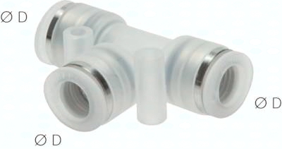Werkstoffe: Körper und Lösering: Polypropylen, Gewindeteil: Polypropylen oder Edelstahl AISI 304, Patrone: Edelstahl AISI 304, Dichtungen: EPDM mit PTFE-Beschichtung (zylindrische Gewinde mit gekammertem EPDM O-Ring), Haltekrallen: Edelstahl AISI 301, verwendete Kunststoffe und Dichtungen besitzen eine FDA-Zulassung Temperaturbereich: -20°C bis max. +80°C Betriebsdruck: -0,95 bis 9 bar (-20°C bis max. +20°C), 30°C: < 6 bar, 40°C: < 5 bar, 50°C: < 4 bar, 60°C: < 3,4 bar, 80°C < 3 bar Medien: ungeölte Druckluft, Wasser (auch demineralisiert), ungefährliche Gase und Flüssigkeiten (keine Mineralöle) Vorteile: leichter und günstiger als Steckanschlüsse aus Edelstahl, im Reinraum gereinigt, montiert und einzeln verpackt, öl- und silikonfrei gefertigt, Gewindestücke aus Polypropylen oder Edelstahl, transparenter Körper erlaubt Sicht auf das Medium im Inneren des Anschlusses, verwendete Kunststoffe und Dichtungen besitzen FDA-Zulassung