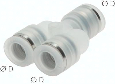 Werkstoffe: Körper und Lösering: Polypropylen, Gewindeteil: Polypropylen oder Edelstahl AISI 304, Patrone: Edelstahl AISI 304, Dichtungen: EPDM mit PTFE-Beschichtung (zylindrische Gewinde mit gekammertem EPDM O-Ring), Haltekrallen: Edelstahl AISI 301, verwendete Kunststoffe und Dichtungen besitzen eine FDA-Zulassung Temperaturbereich: -20°C bis max. +80°C Betriebsdruck: -0,95 bis 9 bar (-20°C bis max. +20°C), 30°C: < 6 bar, 40°C: < 5 bar, 50°C: < 4 bar, 60°C: < 3,4 bar, 80°C < 3 bar Medien: ungeölte Druckluft, Wasser (auch demineralisiert), ungefährliche Gase und Flüssigkeiten (keine Mineralöle) Vorteile: leichter und günstiger als Steckanschlüsse aus Edelstahl, im Reinraum gereinigt, montiert und einzeln verpackt, öl- und silikonfrei gefertigt, Gewindestücke aus Polypropylen oder Edelstahl, transparenter Körper erlaubt Sicht auf das Medium im Inneren des Anschlusses, verwendete Kunststoffe und Dichtungen besitzen FDA-Zulassung