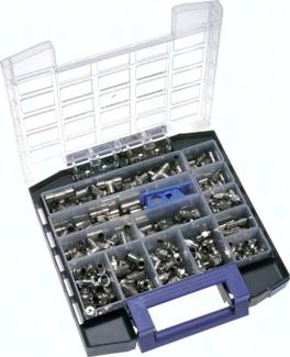 Beschreibung: Diese Multibox enthält 162 gerade Einschraubanschlüsse, Winkel-Einschraubanschlüsse, gerade Steckverbinder, T-Steckverbinder und gerade Einsteckreduzierungen, zuzüglich einem Schlauchabschneider. Vorteile: bis zu 4 dieser Multiboxen lassen sich zum einfacheren Transport und übersichtlicher Anordnung in dem praktischen Multibox-Container Typ MULTIBOX P 1 C verstauen. Inhalt: 70 gerade Einschraubanschlüsse (M 5 - G 1/8" - G 1/4", 4 - 6 - 8 mm Schlauch) 40 Winkel-Einschraubanschlüsse (M 5 - G 1/8" - G 1/4", 4 - 6 - 8 mm Schlauch) 21 gerade Steckverbinder (4 - 6 - 8 mm Schlauch) 21 T-Steckverbinder (4 - 6 - 8 mm Schlauch) 10 gerade Einsteckreduzierungen (4 - 6 - 8 mm Schlauch) 1 Schlauchabschneider