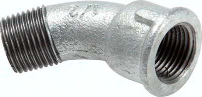 BO1445IAST 45°-Bogen Rp 1/4"(IG)-R 1/4"( AG), Temperguss verzinkt