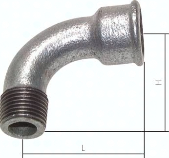 90°-Bogen Rp 2"(IG)-R 2"(AG), Temperguss verzinkt