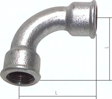 BO38IST 90°-Bogen Rp 3/8" (IG), lang Typ 2/G1, Temperguss verzinkt