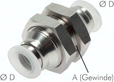 Werkstoffe: Körper und Lösering: Polypropylen, Gewindeteil: Polypropylen oder Edelstahl AISI 304, Patrone: Edelstahl AISI 304, Dichtungen: EPDM mit PTFE-Beschichtung (zylindrische Gewinde mit gekammertem EPDM O-Ring), Haltekrallen: Edelstahl AISI 301, verwendete Kunststoffe und Dichtungen besitzen eine FDA-Zulassung Temperaturbereich: -20°C bis max. +80°C Betriebsdruck: -0,95 bis 9 bar (-20°C bis max. +20°C), 30°C: < 6 bar, 40°C: < 5 bar, 50°C: < 4 bar, 60°C: < 3,4 bar, 80°C < 3 bar Medien: ungeölte Druckluft, Wasser (auch demineralisiert), ungefährliche Gase und Flüssigkeiten (keine Mineralöle) Vorteile: leichter und günstiger als Steckanschlüsse aus Edelstahl, im Reinraum gereinigt, montiert und einzeln verpackt, öl- und silikonfrei gefertigt, Gewindestücke aus Polypropylen oder Edelstahl, transparenter Körper erlaubt Sicht auf das Medium im Inneren des Anschlusses, verwendete Kunststoffe und Dichtungen besitzen FDA-Zulassung