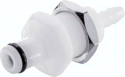 Steckerdurchmesser: 7,8 mm Durchfluss* Luft (Wasser): 50 - 500 l/min (0,4 - 6,5 l/min) Funktion: Wird durch Einstecken des Steckers in die Muffe bis zum hörbaren "Klick" gekuppelt. Ein Druck auf den Entriegelungsknopf (bei Kunststoffkupplungen mit Schlauchanschluss gegen versehentliches Entriegeln geschützt) gibt den Stecker wieder frei. Es können Kupplungsstecker und Kupplungsdosen mit und ohne Absperrventil, sowie verschiedene Werkstoffe beliebig kombiniert werden. Das Absperrventil verhindert ein Austreten des Mediums im ungekuppelten Zustand. Typ POM: Werkstoffe: Körper und Ventile: Acetal (POM, FDA-zertifiziert), Ventilfedern: Edelstahl AISI 316, Dichtungen: NBR, Entriegelungstaste: AISI 301, Schottmutter: Messing vernickelt Temperaturbereich: -40°C bis max. +80°C Betriebsdruck: 0 - 8,3 bar, Vakuum bis 80% Medien: Druckluft, Wasser, Alkohole, Glykol, Mineralöle, Benzin, Sauerstoff**, Kohlendioxid, milde Chemikalien Sterilisierbar durch: Formalin, Isopropylalkohol, Ethylalkohol Einsatzbereich: Für allgemeine Anwendungen. Gute Beständigkeit gegenüber Mineralölen. Typ Polypropylen (Bitte Farbe angeben: beige = PPC oder grau = PPL): Werkstoffe: Körper und Ventile: Polypropylen (FDA-zertifiziert), Ventilfedern: Edelstahl AISI 316, Dichtungen: EPDM, Entriegelungstaste: AISI 301, Schottmutter: Messing vernickelt Temperaturbereich: 0°C bis max. +70°C Betriebsdruck: 0 - 8,3 bar, Vakuum bis 80%, (>+27°C Druckabschläge beachten: +40°C: max. 7 bar, +50°C: max. 6,5 bar, +60°C: max. 5,9 bar, +70°C: max. 5,2 bar) Medien: Druckluft, Wasser, viele Säuren und Laugen, Alkohole, Glykol, MEK, Sauerstoff**, Ozon, Kohlendioxid, viele Chemikalien Sterilisierbar durch: Formalin, Isopropylalkohol, Ethylalkohol, Ethylenoxid, Gammastrahlung Einsatzbereich: Für viele Chemikalien geeignet. Keine Beständigkeit gegenüber Mineralölen. Typ Messing verchromt: Werkstoffe: Körper: Messing verchromt (lebensmittelgeeignet), Ventile: Acetal (POM, FDA-zertifiziert), Ventilfedern: Edelstahl AISI 316, Dichtungen: NBR, Entriegelungstaste: AISI 301, Schottmutter: Messing vernickelt Temperaturbereich: -40°C bis max. +80°C Betriebsdruck: 0 - 17,3 bar, Vakuum bis 80% Medien: Druckluft, Alkohole, Glykol, Mineralöle, Benzin, Sauerstoff**, Kohlendioxid Sterilisierbar durch: Formalin, Isopropylalkohol, Ethylalkohol, Gammastrahlung, Erwärmung auf +121°C (ungekuppelt) Einsatzbereich: Für Anwendungen mit erhöhten Drücken oder mechanischen Belastungen (z.B. durch häufiges Kuppeln). Gute Beständigkeit gegenüber Mineralölen. *bei 1 bar Druckabfall (je nach Konfiguration der Kupplungskombination: mit/ohne Ventil, Anschlussdimension, ... liegt der Durchfluss innerhalb des angegebenen Bereichs), **vor Verwendung mit Sauerstoff unbedingt reinigen. Kompatibel zu****: CPC-Colder PMC, CPC-Colder PMC12, CPC-Colder MC ****Namen und Bezeichnungen sind z.T. eingetragene Warenzeichen der jeweiligen Hersteller. Schottgewinde: 1/2"-24 UNF (Ø 12,7 mm), max. Blechdicke: 7,5 mm