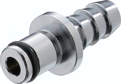 Steckerdurchmesser: 7,8 mm Durchfluss* Luft (Wasser): 50 - 500 l/min (0,4 - 6,5 l/min) Funktion: Wird durch Einstecken des Steckers in die Muffe bis zum hörbaren "Klick" gekuppelt. Ein Druck auf den Entriegelungsknopf (bei Kunststoffkupplungen mit Schlauchanschluss gegen versehentliches Entriegeln geschützt) gibt den Stecker wieder frei. Es können Kupplungsstecker und Kupplungsdosen mit und ohne Absperrventil, sowie verschiedene Werkstoffe beliebig kombiniert werden. Das Absperrventil verhindert ein Austreten des Mediums im ungekuppelten Zustand. Typ POM: Werkstoffe: Körper und Ventile: Acetal (POM, FDA-zertifiziert), Ventilfedern: Edelstahl AISI 316, Dichtungen: NBR, Entriegelungstaste: AISI 301, Schottmutter: Messing vernickelt Temperaturbereich: -40°C bis max. +80°C Betriebsdruck: 0 - 8,3 bar, Vakuum bis 80% Medien: Druckluft, Wasser, Alkohole, Glykol, Mineralöle, Benzin, Sauerstoff**, Kohlendioxid, milde Chemikalien Sterilisierbar durch: Formalin, Isopropylalkohol, Ethylalkohol Einsatzbereich: Für allgemeine Anwendungen. Gute Beständigkeit gegenüber Mineralölen. Typ Polypropylen (Bitte Farbe angeben: beige = PPC oder grau = PPL): Werkstoffe: Körper und Ventile: Polypropylen (FDA-zertifiziert), Ventilfedern: Edelstahl AISI 316, Dichtungen: EPDM, Entriegelungstaste: AISI 301, Schottmutter: Messing vernickelt Temperaturbereich: 0°C bis max. +70°C Betriebsdruck: 0 - 8,3 bar, Vakuum bis 80%, (>+27°C Druckabschläge beachten: +40°C: max. 7 bar, +50°C: max. 6,5 bar, +60°C: max. 5,9 bar, +70°C: max. 5,2 bar) Medien: Druckluft, Wasser, viele Säuren und Laugen, Alkohole, Glykol, MEK, Sauerstoff**, Ozon, Kohlendioxid, viele Chemikalien Sterilisierbar durch: Formalin, Isopropylalkohol, Ethylalkohol, Ethylenoxid, Gammastrahlung Einsatzbereich: Für viele Chemikalien geeignet. Keine Beständigkeit gegenüber Mineralölen. Typ Messing verchromt: Werkstoffe: Körper: Messing verchromt (lebensmittelgeeignet), Ventile: Acetal (POM, FDA-zertifiziert), Ventilfedern: Edelstahl AISI 316, Dichtungen: NBR, Entriegelungstaste: AISI 301, Schottmutter: Messing vernickelt Temperaturbereich: -40°C bis max. +80°C Betriebsdruck: 0 - 17,3 bar, Vakuum bis 80% Medien: Druckluft, Alkohole, Glykol, Mineralöle, Benzin, Sauerstoff**, Kohlendioxid Sterilisierbar durch: Formalin, Isopropylalkohol, Ethylalkohol, Gammastrahlung, Erwärmung auf +121°C (ungekuppelt) Einsatzbereich: Für Anwendungen mit erhöhten Drücken oder mechanischen Belastungen (z.B. durch häufiges Kuppeln). Gute Beständigkeit gegenüber Mineralölen. *bei 1 bar Druckabfall (je nach Konfiguration der Kupplungskombination: mit/ohne Ventil, Anschlussdimension, ... liegt der Durchfluss innerhalb des angegebenen Bereichs), **vor Verwendung mit Sauerstoff unbedingt reinigen. Kompatibel zu****: CPC-Colder PMC, CPC-Colder PMC12, CPC-Colder MC ****Namen und Bezeichnungen sind z.T. eingetragene Warenzeichen der jeweiligen Hersteller.