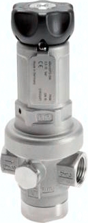Ausführung: rücksteuerbar (mit Sekundärentlüftung), optional nicht rücksteuerbar Werkstoffe: Dichtung: FKM/PTFE, Membrane: FKM, Gehäuse: 1.4408, Innenteile: 1.4404, Druckfeder: 1.4568, Handrad: PBT Temperaturbereich: -10°C bis max. +120°C Eingangsdruck: max. 60 bar Medien: geölte und ungeölte Druckluft, ungiftige/ungefährliche gasförmige Medien (mit Option -NB: Gase und Flüssigkeiten, demineralisiertes Wasser) Manometeranschluss: G 1/4" Optional: Ausführung nicht rücksteuerbar für Gase und Flüssigkeiten -NB *bei 7 bar Eingangsdruck, 6 bar Ausgangsdruck und 1 bar Druckabfall, **Kolbendruckregler