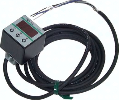 Werkstoffe: Körper: POM, medienberührende Teile: POM (bei Ausführung Edelstahl: 1.4435) Temperaturbereich: -10°C bis max. +50°C Schutzart: IP 65 Versorgungsspannung: 10,8 - 30 V DC Stromaufnahme: max. 70 mA (+ Laststrom) Anzeigeeinheiten: frei wählbar zwischen kPa, kgf/cm², gf/cm², mmHg, mmH2O, bar, mbar, psi Anschlussgewinde: Rc 1/8" IG (1.4435: G 1/4" AG) Kabellänge: 2 m 2x Schaltausgang (PNP) : Reproduzierbarkeit: 0,2 % des Messbereiches ± 1 Stelle; Schaltzeit: max. 5 ms; Schaltleistung: 30 V DC, max. 100 mA; Schalthysterse: einstellbar 1x Analogausgang: Ausgangsspannung: 1 - 5 V; Auflösung: 1/204 Vorteile: Druckmessung mit Piezo-Quarz-Technik, keine Membrane, keine beweglichen Teile, daher kein Verschleiß.