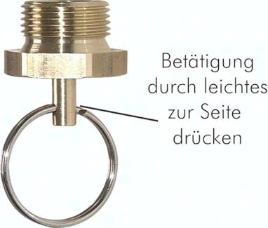 Werkstoffe: Körper und Ventil: Messing, Ring: Messing vernickelt, Kegeldruckfeder: Edelstahl, Dichtung: NBR Temperaturbereich: -40°C bis max. +80°C Betätigung: durch leichtes zur Seite drücken des Rings