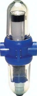 Diese Farbwechselfilter sind professionelle Druckluftfilter, die keinen Vorfilter benötigen und in verunreinigter Druckluft eingesetzt werden können. In diesem Filter sind alle üblichen Filtrationsprinzipien kombiniert. Die eintretende Druckluft wird im unteren Gehäuseteil durch Zentrifugaltrennung vorgereinigt. Anschließend durchströmt die Luft einen Grobkoaleszenzfilter. Die Feinstfilterung findet in einem Spezialfilterelement statt. Dieses Filterelement bindet die Öl- und Feinstpartikel in einem Spezialgranulat, welches sich durch die allmähliche Sättigung nach und nach dunkelrot verfärbt. Durch diese Farbänderung wird der Betreiber ständig (auch bei abgeschalteter Druckluftanlage) über den Zustand des Filterelementes informiert und so vor drohenden Schäden der Anlage gewarnt. Anwendung: In sehr empfindlichen Steuerungen, Laboranwendung, Labormesstechnik, Elektroindustrie. Der Typ FWFAK 12 findet zusätzlich Anwendung in der medizinischen und pharmazeutischen Industrie zur Atemluftaufbereitung, sowie in Dentallaboren. Temperaturbereich: max. +65°C Eingangsdruck: 3 - 10 bar Druckabfall: bei Volllast max. 0,15 bar Achtung: Der Einsatz in stark pulsierenden Luftströmen (z. B. nach Kolben-Kompressoren) sollte vorab mit dem Hersteller geklärt werden, da unsachgemäße Montagen zu Beschädigungen führen können!