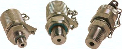 Werkstoffe: Körper: Stahl verzinkt, Elastomerdichtung: NBR Temperaturbereich: -20°C bis max. +100°C Betriebsdruck: bis 630 bar Anwendung: Messanschlüsse werden zur Überwachung von Betriebsdrücken sowie zur Entlüftung an ungünstig verlegten Rohrleitungen verwendet. Die Schraubkupplung ist verschlossen und wird nur durch Aufschrauben eines Messschlauches mechanisch geöffnet. Somit ist die Verbindung zum Medium hergestellt.