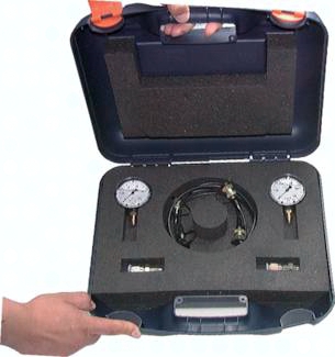 Auf Basis der langjährigen Erfahrung unserer Ingenieure und Monteure haben wir ein Messsortiment zusammengestellt, das Ihnen jederzeit die Möglichkeit bietet, Drücke an Ihren Anlagen und Maschinen zu messen. Dieses Messsortiment beinhaltet die gängigsten Verschraubungen, Adapter und Messschläuche, die in einem übersichtlichen Koffer angeordnet sind. Achtung: Manometer - Bitte wählen Sie zwei der nachfolgend aufgeführten Manometer aus ! Inhalt: Gewindereduzierungen: je 1 Stk. Ri 1/2 x 1/4, Ri 3/8 x 1/4, Ri 1/8 x 1/4 Messschläuche: je 1 Stk. ME SL 162/1000, ME SLST 162/1000, ME SL 1615/1000 Adapter: je 1 Stk. ME MAAG 14, ME MAAG 161514, ME 14, ME 18, ME 10x1, ME 12x1,5, ME 14x1,5, ME 8 L, ME 10L, ME 12L, ME 15L, ME DKO 10L, ME DKO 15L Manometer - bitte wählen Sie zwei der nachfolgend aufgeführten Manometer aus! Manometer - Standard: 1 x MS 10063 GLY, 1 x MS 25063 GLY Manometer - Alternativ: 1 x MS 40063 GLY, 1 x MS 100063 GLY *Der Messgerätekoffer beinhaltet 2 Manometer. Bitte wählen Sie aus den in der Tabelle aufgeführten Manometern.