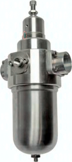 Ausführung: rücksteuerbar (mit Sekundärentlüftung) Werkstoffe: Dichtung: Viton, Membrane: NBR (PTFE beschichtet), Filter: 1.4401 (50 µm) Temperaturbereich: -20°C bis max. +80°C Eingangsdruck: max. 30 bar Ausgangdruck: 1,5 bis 15 bar regelbar Medien: geölte und ungeölte Druckluft, ungiftige Gase Manometeranschluss: G 1/4" Optional: NPT-Gewinde -NPT, automatischer Ablass (Innenteile aus Messing, max. 16 bar) -AM Andere Regelbereiche: 0,1 - 1,5 bar -1,5, 0,2 - 3 bar -3, 0,5 - 8 bar -8 *Bei 8 bar Eingangsdruck, 6 bar Ausgangsdruck und 1 bar Druckabfall