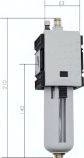 Werkstoffe: Körper: Grivory® (PA 66), Dichtungen: NBR, Ölvorratsbehälter: Polycarbonat Temperaturbereich: bis max. +50°C Eingangsdruck: 0,5 - 16 bar (Baureihe 0: 0,5 - 12 bar) Medien: Druckluft, neutrale Gase Vorteile: einfacher Zusammenbau von Einzelkomponenten durch Koppelpakete innerhalb einer Baureihe, halbautomatische Ölbefüllung durch Anschließen eines Schlauches unten an den Ölbehälter (G 1/8"). Durch diesen Schlauch wird bei Drücken des Öleinfüllknopfes das Öl in den Behälter gesaugt (nicht bei Baureihe 0). Öldosierung bei 1000 l/min: ca. 1 - 2 Tropfen/min Ölvorrat: 80 cm³ Ansprechgrenze (6 bar): 70 l/min Optional: Ausführung mit Metallbehälter und Sichtrohr -M