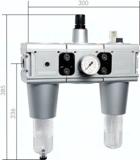Ausführung: Filter, Druckregler rücksteuerbar, Öler (Baureihe 0 mit Micro-Nebelöler) Werkstoffe: Körper: Zink Druckguss Z410 (Baureihe 5: Aluminium), Federhaube: POM, Membrane und Dichtungen: NBR, Behälter: Polycarbonat Temperaturbereich: bis max. +60°C Manometeranschluss: G 1/4" (Baureihe 0: G 1/8") Eigenluftverbrauch: keiner (Baureihe 5: max. 0,5 l/min) Porenweite im Filter: 5 µm (Baureihe 5: 40 µm, auf Wunsch 8 µm) Kondensatentleerung: halbautomatisch**** Medien: Druckluft, neutrale Gase Vorteile: automatische Entlüftung bei Überdruck auf der Sekundärseite, einfacher Zusammenbau von Einzelkomponenten durch Koppelpakete innerhalb einer Baureihe und Gewindegröße, Handrad kann durch Herunterdrücken arretiert werden. Eingangsdruck: 1,5 - 16 bar (mit Metallbehälter max. 20 bar**) max. Kondensatmenge: 125 cm³ Schalttafelgewinde: M 30 x 1,5 Öleransprechgrenze (6 bar): 800 l/min Ölvorrat: 450 cm³ Öldosierung bei 1000 l/min: ca. 1 - 2 Tropfen/min Optional: abschließbar durch Zylinderschloss -K, abschließbar durch Zylinderschloss mit E 11-Schließung*** -KE11, Ausführung mit Schutzkorb -S, Ausführung mit Metallbehälter** und Sichtrohr -M, Ablassautomatik -AM, Ablassautomatik drucklos geschlossen (0 - 16 bar) -AMNC, elektrische Niveauüberwachung -N Vorteile: Befüllung mit Öl unter Druck möglich. *Standardbaureihe, bitte bevorzugt einsetzen, da Regelbereich universal einsetzbar, **Tropfaufsatz aus Metall/Glas-Kombination, Metallbehälter M mit Ablassautomatik AM: 1,5 - 16 bar, ***Volkswagen-Schließung (wird ohne Schlüssel geliefert), ****Sobald der Eingangsdruck unter den min. Eingangsdruck fällt, öffnet das Ablassventil automatisch. Durch Festdrehen der Ablassschraube kann die halbautomatische Ablassventilöffnung verhindert werden.