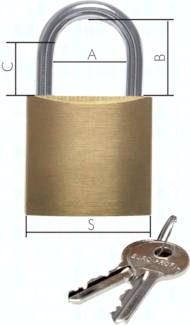 Beschreibung: Robustes Zylinderschloss mit gehärtetem Stahlbügel Werkstoffe: Gehäuse: Messing, Bügel: Stahl (gehärtet), Innenteile: Stahl Lieferumfang: Zylinder-Vorhangschloss mit 2 Schlüsseln