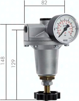 Anwendung: Präzisions-Druckregler werden eingesetzt, wo bei kleinen Durchflussmengen größte Konstanz des Sekundärdruckes erforderlich ist. Die gute Regel- und Durchflusscharakteristik wird dadurch erreicht, dass das Verhältnis der Membrane zur Ventilsitzfläche sehr groß ist. Der Regler ist gegenüber Eingangsdruckschwankungen weitgehendst unabhängig, hat keinen Eigenluftverbrauch und kann mit "normal" gefilterter Druckluft verwendet werden. Ausführung: rücksteuerbar (mit Sekundärentlüftung) Medien: geölte und ungeölte Druckluft, ungiftige und nicht brennbare Gase Temperaturbereich: -10°C bis max. +60°C Eingangsdruck: max. 16 bar Durchfluss: 550 l/min, Sekundärentlüftung: 100 l/min Eigenluftverbrauch: keiner Regelgenauigkeit: ± 7,5 mbar Werkstoffe: Körper: Zink Druckguss Z410, Membrane und Dichtungen: FPM Manometeranschluss: G 1/4" Schalttafelgewinde: M 20 x 1,5 Vorteile: automatische Entlüftung bei Überdruck auf der Sekundärseite, feine Regelung des Druckes unabhängig von Vordruck, kein Eigenluftverbrauch, robuste Bauform, keine Feinfilterung der Druckluft notwendig *Sonderregler für Ansteuerung von Volumenbooster (Feedback-Leitung von Sekundärseite des Volumenboosters wird für die Regelung herangezogen). Geringer Eigenluftverbrauch