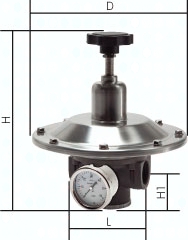 Ausführung: nicht rücksteuerbar (ohne Sekundärentlüftung) Werkstoffe: Körper und Federhaube: Aluminium lackiert (Typ RPM 1/2": Federhaube Edelstahl), Membrane: NBR (PTFE-beschichtet), Innenteile: Messing, Dichtungen: NBR Temperaturbereich: -20°C bis max. +60°C Eingangsdruck: max. 6 bar Medien: geölte und ungeölte Druckluft, ungiftige und nicht brennbare Gase (auch Stickstoff) Manometeranschluss: G 1/4" Optional: für CO2 (EPDM-Membrane) -CO *Gewinde Ausgang 3/4", **gemessen bei 6 bar Eingangsdruck und max. Ausgangsdruck