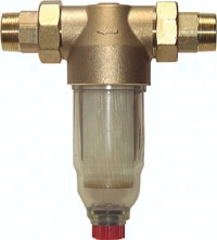 Ausführung: Feinfilter (DVGW-bauteilgeprüft) für die Filtration von Trink- und Brauchwasser sowie von chemikalienfreiem Kühlwasser von Durchlaufkühlungen (kein Kreislaufwasser). Schützt die Rohrleitungen und die daran angeschlossenen Systemteile vor Funktionsstörungen und Korrosionsschäden durch im Wasser mitgeführte Fremdpartikel wie Rostteilchen, Späne, Sand, Hanf etc. Werkstoffe: Körper: Messing, Siebtasse: klarer Spezialkunststoff Temperaturbereich: bis max. +40°C (Medium max. +30°C) Eingangsdruck: max. 16 bar Porenweite im Filter: 90 µm Medien: Trink- und Brauchwasser sowie chemikalienfreies Wasser für verschiedenste industrielle Anwendungen (kein Kreislaufwasser) *bei Delta p = 0,2 bar