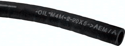 Werkstoffe: Schlauchinnenschicht: Synthetisches Gummi (AEM), Festigkeitsträger: 1 Polyamidgeflecht (ab DN 25: 2 Polyamidgeflechte mit Stahldrahtwendel), Außenschicht: abriebfestes synthetisches Gummi (AEM), ozon- und rissbeständig Temperaturbereich: -40°C bis max. +135°C (kurzfristig bis max. +150°C) Einsatzbereich: Motorenschmieröle, Hydraulikflüssigkeiten, Schmierfette, ölhaltige Luft und Vakuum. Bei anderen Medien bitte anfragen. Nicht geeignet für Glykol, Glykol-Wassergemische, Diesel- und Biodieselkraftstoffe, Rapsmethylester (RME) und Heizöl (EL/L).